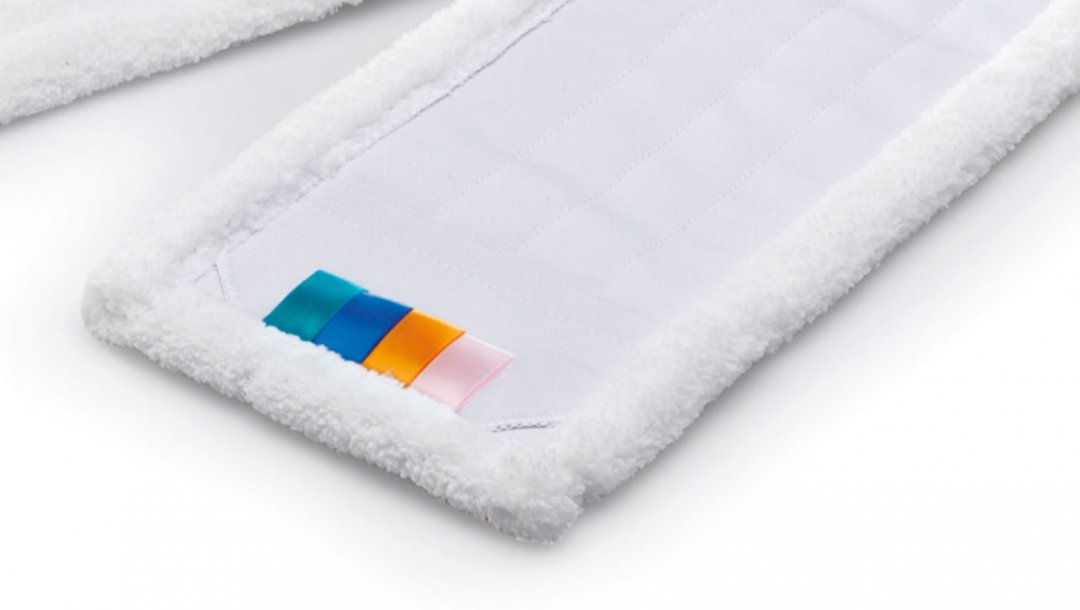 - 4-farbige Schlaufen (blau, rot, gelb, grün), für Farbkodierung des Wischbezugs — einfach die nicht benötigten Schlaufen abschneiden!